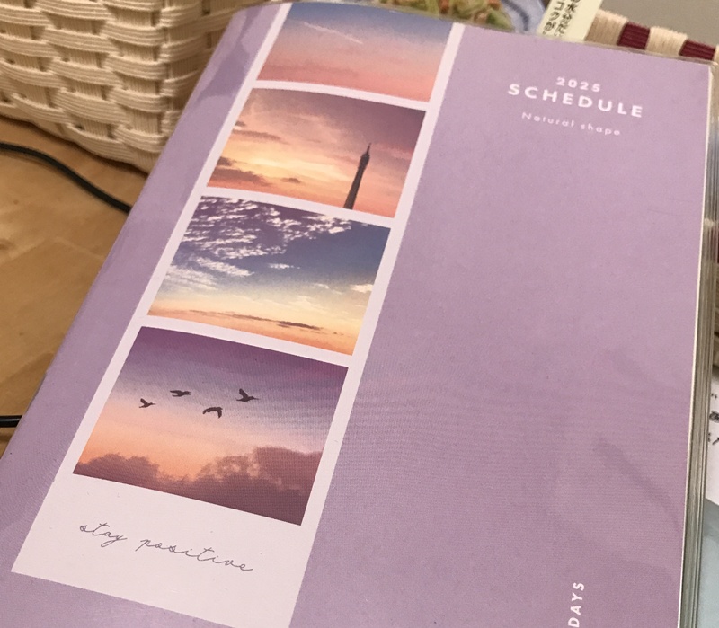 今年のスケジュール帳を買う時、近年は100均で買ってるけど、この写真が夜明けみたいだな、今年は夜明けの年になるといいなと思い、買ったものでした。